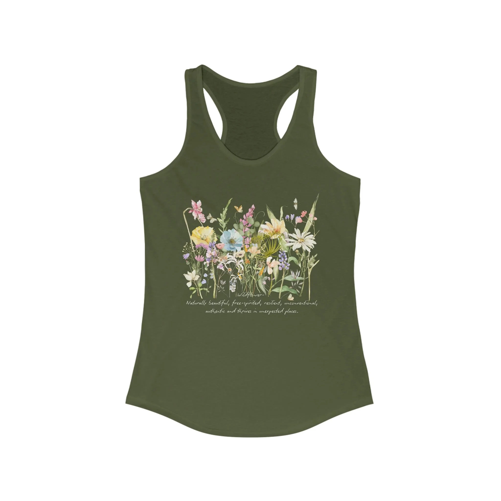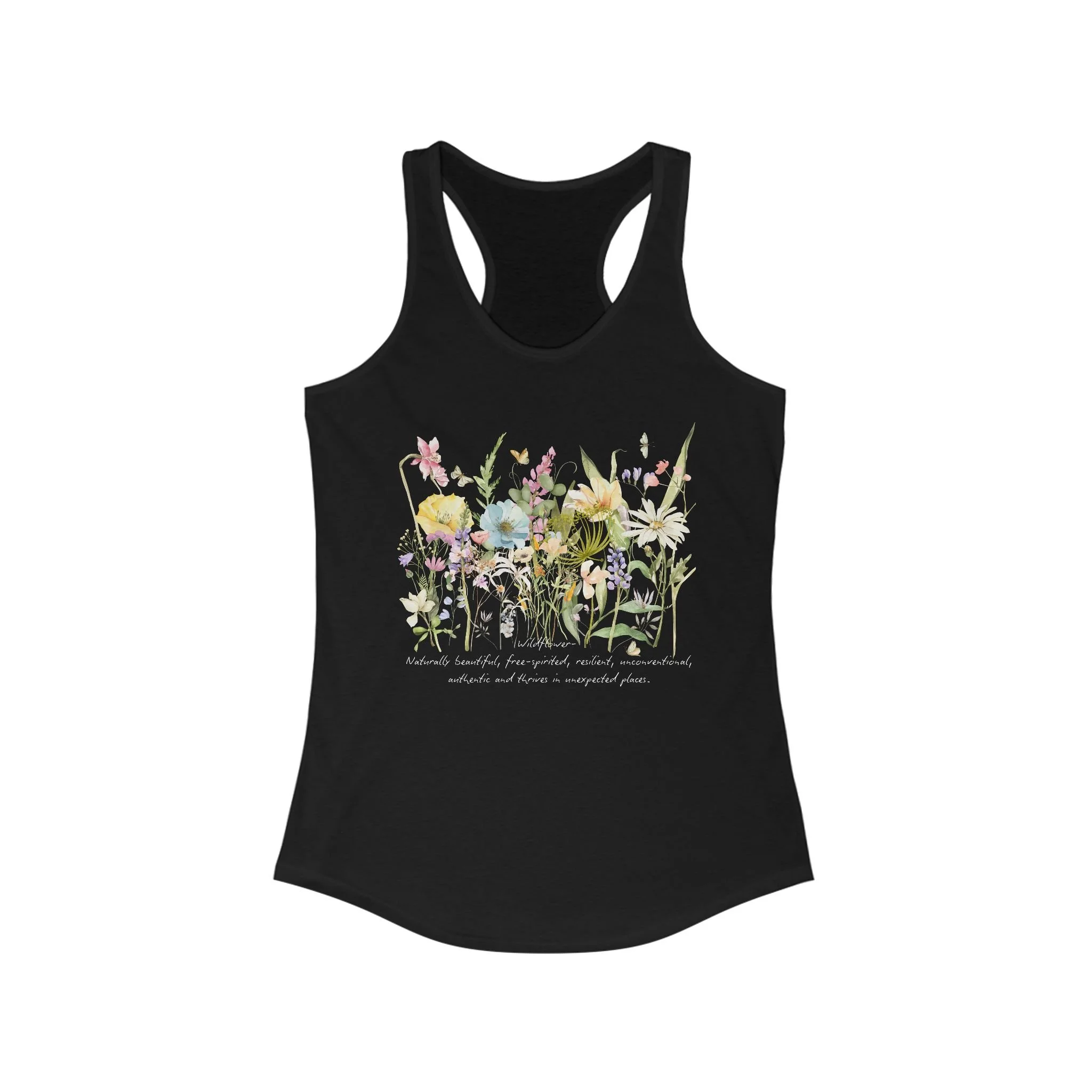 Wild flower racer-back tank. This tank exudes a relaxed yet sophisticated vibe, making it perfect for workouts, casual outings, or lounging at home. Its breezy fit and soft fabric not only ensure comfort but also make it a versatile option for layering. Ideal for women who appreciate both style and functionality, it is perfect for summer days, fitness events, or even cozy nights in. Whether you’re celebrating a holiday, enjoying a picnic, or participating in outdoor activities, this tank will keep you looking effortlessly chic.